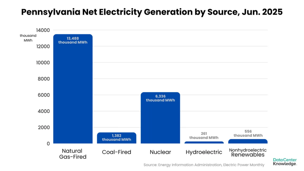 2025년 펜실베니아주 전력생산 현황. 출처:데이터센터날리지